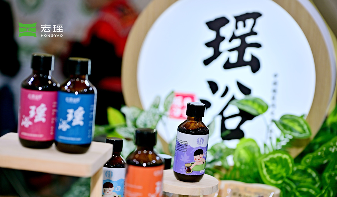 康养方案区:展示瑶浴原液、草本茶饮、外用药酒等全品类产品,涵盖家庭护理、院线康养、日常调理等多元场景,其中“瑶清温通”药酒因针对关节养护的而备受中老年人关注。