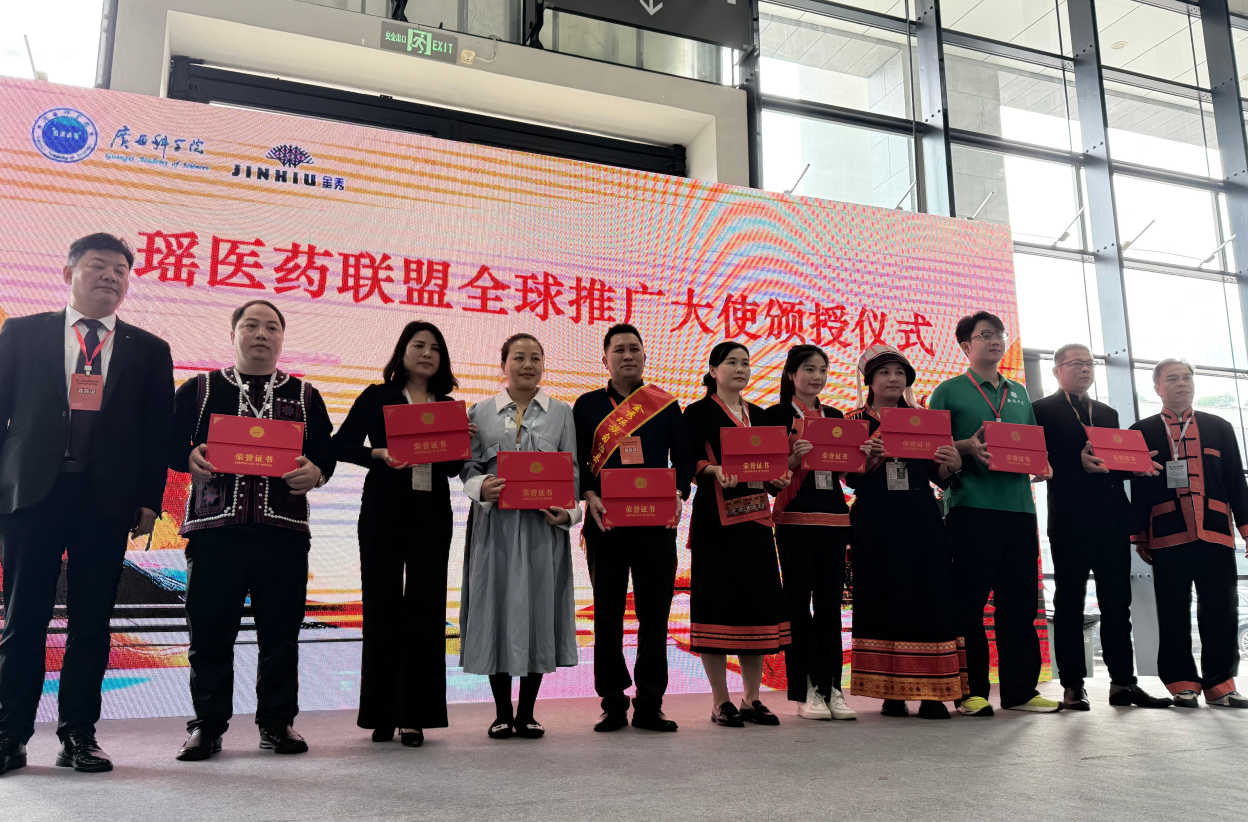 颁奖与授证仪式上,宏瑶集团副总裁黄良安、营销中心副总经理覃熙洁等公司负责人登上领奖台,荣膺“瑶医药联盟全球推广大使”称号。此外,国医大师受聘、品牌颁奖等环节同步开展,多方合力为瑶医药走向全国搭建核心平台。