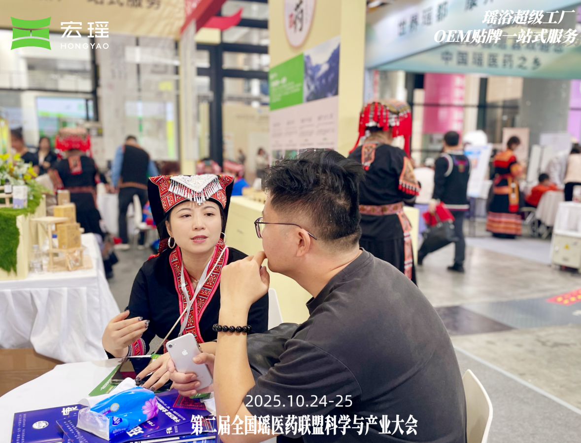 宏瑶集团的亮眼表现源于其 “从种植到产品” 的全链条把控:从金秀大瑶山建有专属药材种植基地,到ISO9001质量管理体系认证下的超级瑶浴工厂,非遗瑶浴得以品质保障。此次参展期间,其便携装浴包、草本茶饮等产品达成多项合作意向,进一步推动瑶医药从 “深山秘方” 走向家庭康养场景。