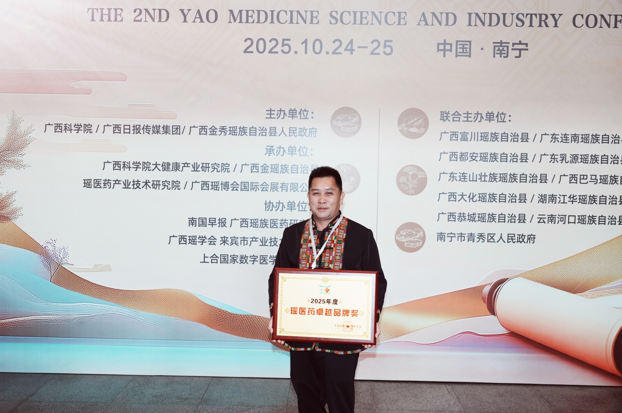 10月,黄良安在第二届瑶医药科学与产业大会上荣膺“瑶医药联盟全球推广大使”,同场获得“2025年度瑶医药卓越品牌奖”的宏瑶集团,也以全产业链实力印证了这份荣誉的含金量。他表示,成为家乡瑶医药代言的“全球大使”,是“双向成就”。